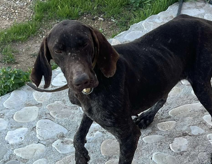 Merhaba bu köpek aniden geldi büyükkonuk taraflarında Çok zayıf ve aç Tasması var yerleşim olmayan bir yerdeyiz